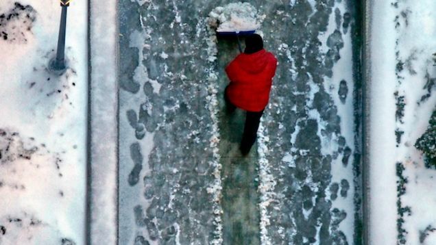 [The weather in Brooklyn, N.Y. was really gross on Tuesday, as the poor person shoveling the sidewalk here could have told you. Image via AP]