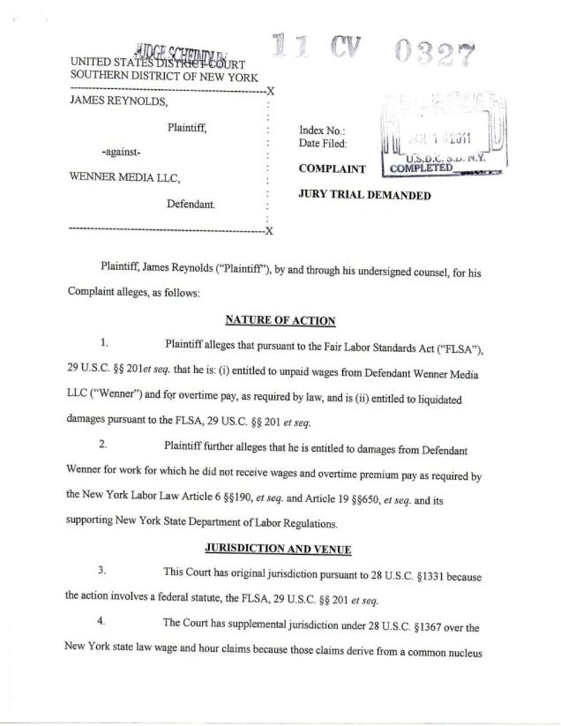 Disgruntled Copy Editor Strikes Back - DocumentsHamilton Nolan1/21/11 1:28pmFiled to: LawsuitsMediaWenner MediaGalleryEditPromoteDismissUndismissHideShare to KinjaToggle Conversation toolsGo to permalink