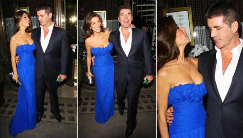 [Former American Idol judge Simon Cowell notices his fiancee Mezhgan Hussainy's cleavage as the two leave Mr Chow in London after attending the 2011 National Television Awards. Image via Pacific Coast News]