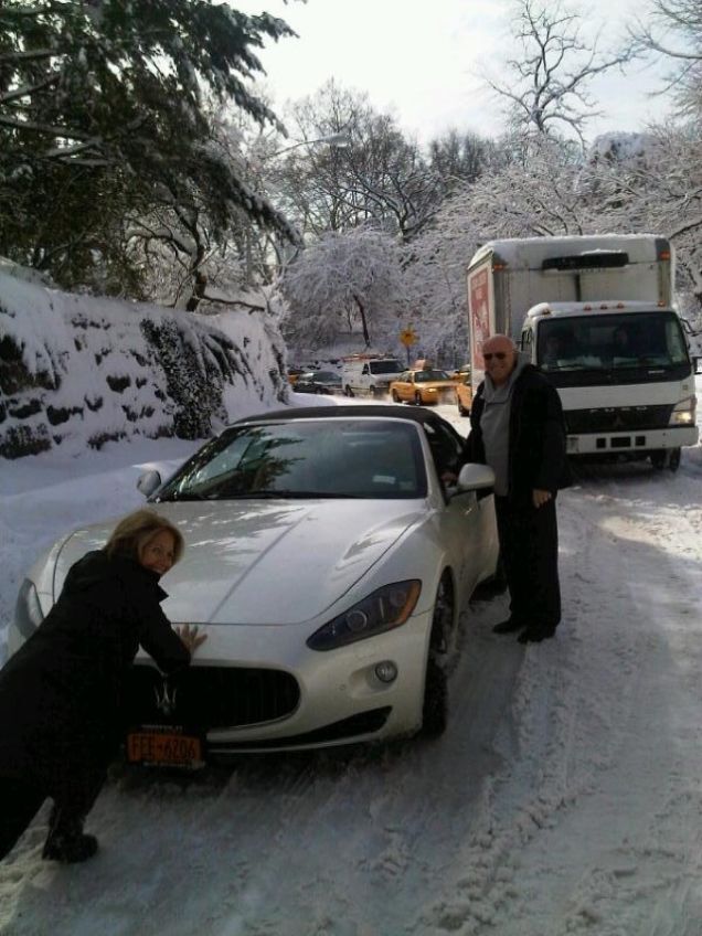 Media mogul Barry Diller was driving his Maserati through a snowy Central Park this morning when it got stuck. Luckily Katie Couric happened by to help push it out—in the wrong direction. Rich people really don't "get" snow.