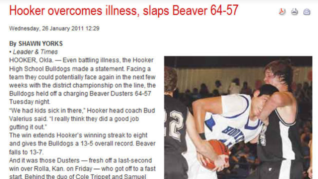 'Hooker Overcomes Illness, Slaps Beaver'Richard Lawson1/28/11 4:38pmFiled to: HeadlinesJournalismHumorSillyTweetgFb31EditPromoteDismissUndismissHideShare to KinjaToggle Conversation toolsGo to permalink Today in inadvertently funny headlines, there's this high school basketball piece from Kansas's Leader & Times. Sadly, the article does not tell the tale of a hard-luck working girl overcoming the odds to issue her traditional mating sound. (via)Reply31 repliesLeave a reply