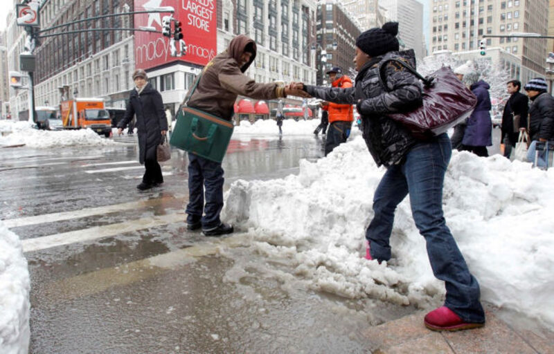 [Yesterday's snow has now melted into puddles of brown nastiness on the streets of New York. Can we talk about something other than snow now? Image via AP]