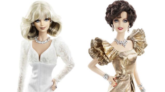 Dynasty divas Krystal and Alexis Carrington got turned into plastic Barbie miniatures to celebrate the show's 30th anniversary. We can't wait to get them both so we can reenact their famous fights. [Image via Pacific Coast News]
