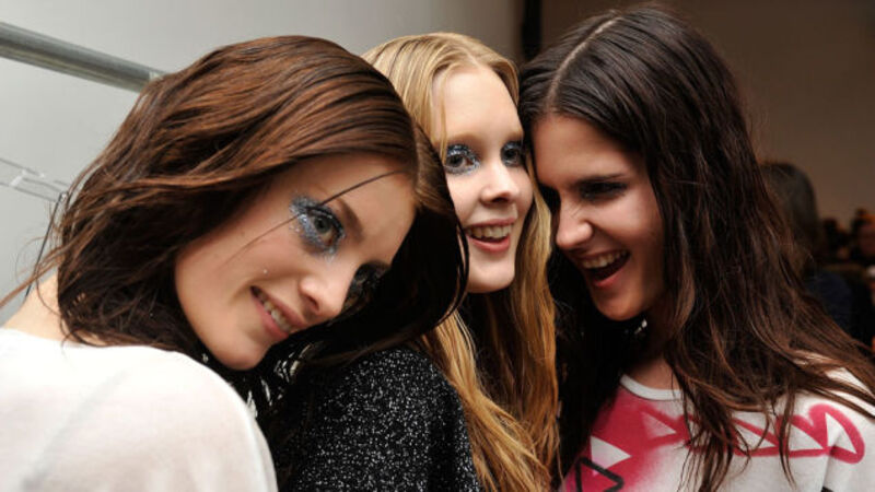[New York Fashion Week kicked off at Lincoln Center today. Rather than look at the clothes, here are some of the fabulous images of what happened backstage, like these models mugging for the cameras before the Vena Cava show. Image via Getty]