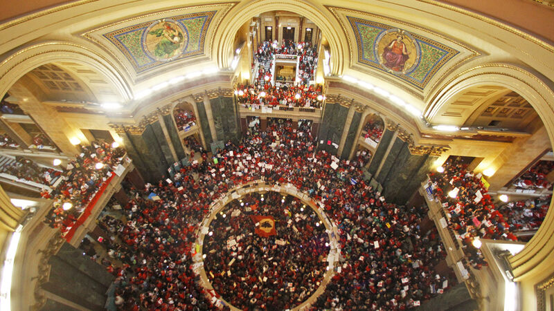 The Wisconsin Senate needs a quorum — the minimum number of legislators needed to hold a vote — of 20 members. There are 19 Republicans and 14 Democrats in the Senate. So what happened today when the Senate tried to start its vote? From the Wisconsin State Journal: