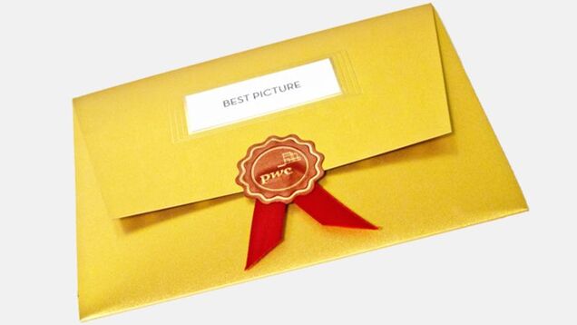 Friedland's envelope is certainly designed to grab attention. Taking cues from old Hollywood, it's done up like a gilded picture frame, which features the award category in sleek charcoal ink. Images of the Oscar statuette in satin gold leaf adorn a red-lacquered lining. As for the winner's name: It'll appear on a heavyweight ecru card decorated with even more gold — "gold foil accents" and "a gold leaf-embossed Oscar statuette" — then mounted on a red lacquer frame. The whole thing will be sealed with a ribbon featuring PwC's logo. (PwC tallies the ballots and safeguards the winning names each year.)