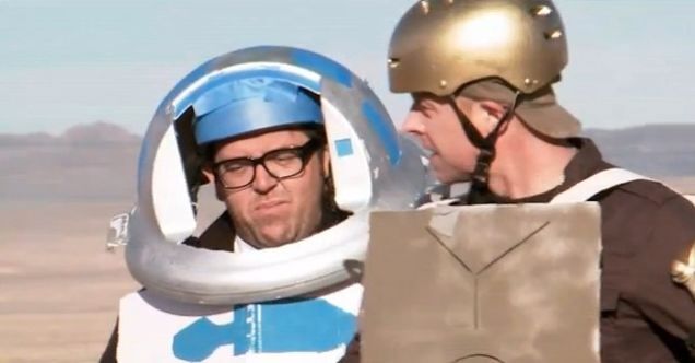 While Simon Pegg and Nick Frost can certainly take on zombies, murderers, and aliens, George Lucas is an entirely different story. Watch as they try to recreate Star Wars—but immediately dissolve into bickering over Frost's R2D2 beeps.