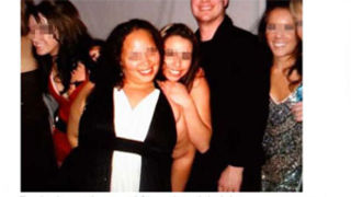 Someecards and Lamebook point us to an awkward optical illusion, wherein a clothed female appears to be naked due to the folds of her friend's arm. File under: How to get (fake) boobs on Facebook. [Lamebook]
