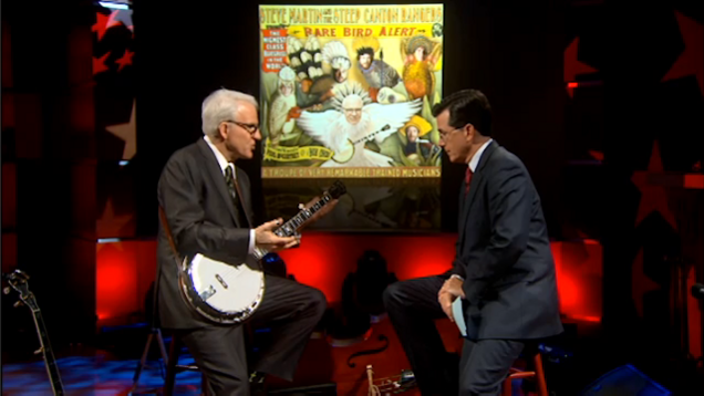 In anticipation of the release of his new bluegrass album, Steve Martin appeared on the Colbert Report (banjo in hand) to talk about his tips on playing the instrument. Later, Steve and the Steep Canyon Rangers played a song for us.