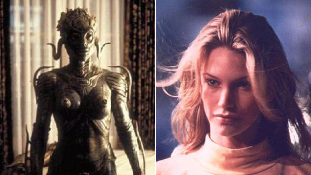 Not, actually, literally, Natasha Henstridge, obviously, as hilarious and frightening as that would be. But writer and skeptic Benjamin Radford thinks that Henstridge's character, the killer, boob-having alien Sil, inspired the classic depiction of the Chupacabra ("a bipedal creature, 4 to 5 feet tall with spikes down its back, long, thin arms and legs, and an alienlike oblong head with red or black eyes"), first given to a Puerto Rican newspaper by a woman named Madelyne Tolentino: