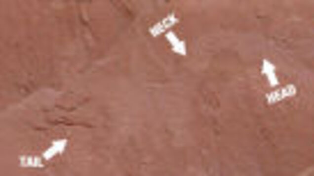 But! In online journal Palaeontologia Electronica, the scientists who discovered the petroglyph argue that it is a painting of a snake (or some other elongated wiggly thing) that got some schmutz underneath it. The creationists are mistaking schmutz for legs, the scientists say.