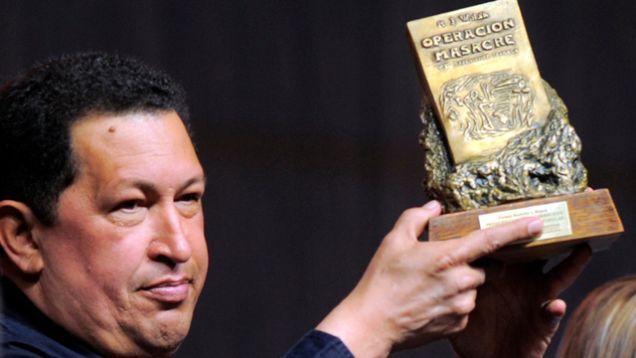 Venezuelan leader Hugo Chávez yesterday was awarded a prize from the communications department at Argentina's La Plata University for his support of "popular communication." Wow. We're assuming the award is for his stupid Twitter account? Or perhaps his talk show, Aló Presidente?