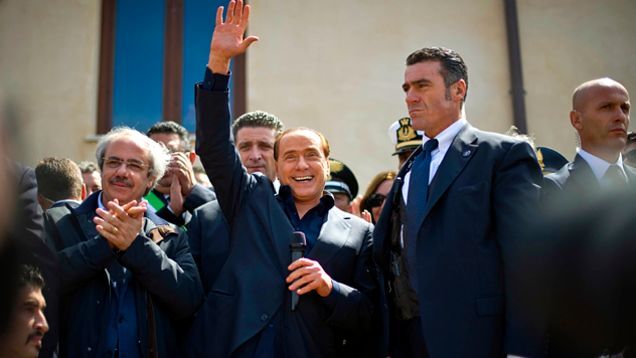 Italy's greatest self-tanning sex fiend, Silvio Berlusconi, yesterday traveled to the island of Lampedusa to encourage xenophobia and to scare African migrants back to where they came from. He even said he was buying a vacation home there because the island is so fucking sexy. But aside from promising to tackle his self-made immigration problem — North Africans fleeing violence perpetrated by Berlusconi's dictator buddies — the old man found some time to joke around with the island's lovely ladies, according to the Daily Mail: