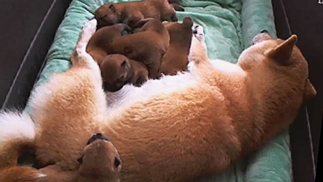 Kika's owners say this is her third and final litter. Her first litter was a viral sensation in 2008. [SFShiba]