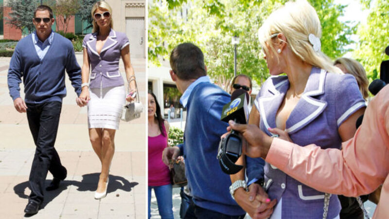 Paris Hilton took a trip to the Van Nuys courthouse today to testify against the armed home invaders whose attack she tweeted last year. Boyfriend Cy Waits was there to lend emotional support. But then—Paris, look behind you!