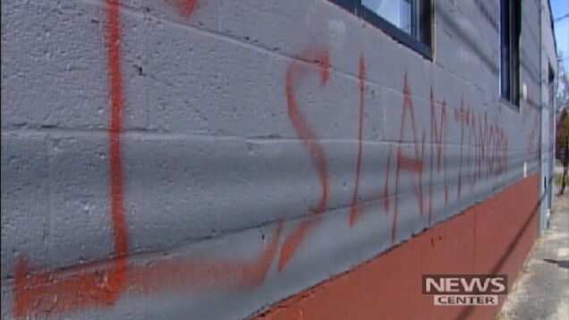 On Monday in Portland, ME the walls of the largest mosque in town were spray-painted with "Osama today, Islam tomorow [sic]" and other phrases, sometime following morning prayers on the day after American forces killed Osama bin Laden in Pakistan.