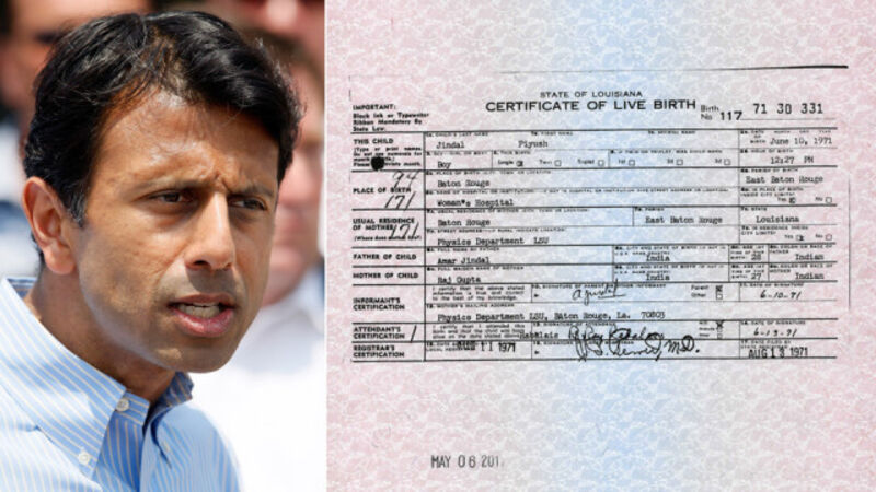 Louisiana Governor Bobby Jindal heard somewhere that all the cool politicians were releasing their birth certificates. So he released his! Tell us, Governor Jindal: If Barack Obama and Donald Trump jumped off a bridge, would you jump off too? Huh?