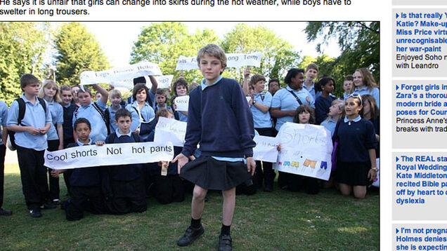 A 12-year-old British schoolboy who organized rally to liberate shorts made a trenchant observation yesterday. Chris Whitehead—whose "discriminatory" school uniform code permits skirts for girls but no corollary warm weather option for boys—told a reporter: