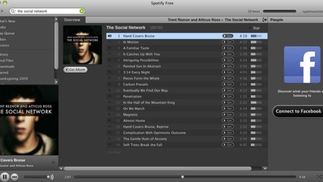 Spotify is, as we've written before, a fairly amazing service where you can pick and play, in an iTunes-like interface, any number of songs from a huge library of popular music—without having to buy or download said music, at least until you hit the 10-hour-per-month limit. Spotify also lets you share and collaboratively edit playlists, a feature presently turbocharged by the Spotify Facebook app, which helps you find friends who are using Spotify, and their playlists. Under the forthcoming Facebook deal, people will install Spotify directly from Facebook, via a prominent link next to their News Feed, and will be able to listen to songs simultaneously with their friends. Or at least that's what Forbes reports.