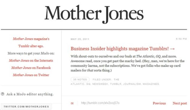 In your shiny Thursday media column: the Tumblr-magazine relationship debated, Erik Wemple goes soft on the WaPo, Dorothy Parvaz's fun prison stories, HuffPo keeps on HuffPo-in', and your daily Katie Couric update.