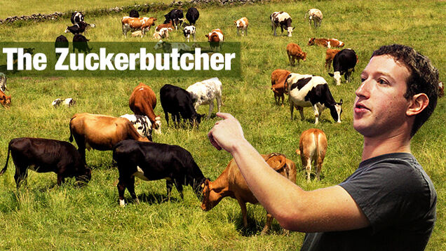 [Photo of Zuckerberg via Getty. Photo of a cows grazing on a farm via Shutterstock]