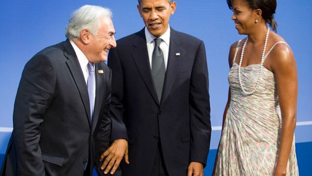 There are not any funny jokes to be made about alleged sexual assault. On the other hand, this 2009 photo of alleged sexual assaulter Dominique Strauss-Kahn meeting the Obamas is pretty funny, now. Ace job with the gentle restraint there, Prez. Because you know that Dominique Strauss-Kahn! Always (allegedly) goin' nuts around the ladies (unless a court of law determines otherwise).
