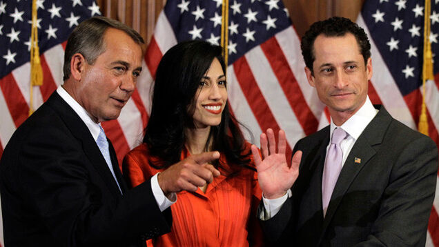 Weiner (pictured above with his wife, Huma Abedin, and the only other man in Congress whose name would make a sex scandal twice as fun) quickly Tweeted that his Facebook was hacked, which — even though the picture was, as far as we can tell, not posted to Facebook — seems to be a reference to the dickshot Tweet; today, he Tweeted "Touche Prof Moriarity. More Weiner Jokes for all my guests! #Hacked!" Stranger things have happened, we suppose!