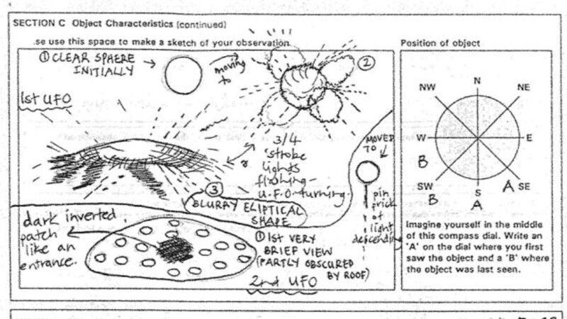 [Reuters; image, of a British document detailing a UFO sighting, via AP]