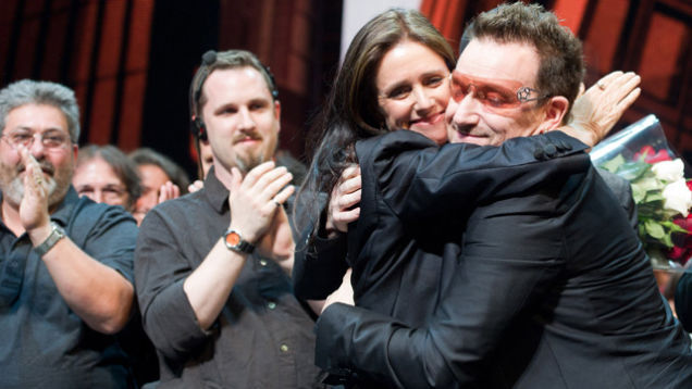 Bono, taking a microphone at the curtain call, paid tribute to her creativity, though he drew the loudest cries of approval when he said, "By the way, you're looking hot, Julie."