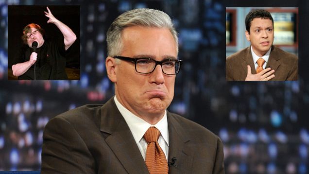 For his new Current TV program — premiering tonight! — angry television personality Keith Olbermann will step out of his comfort zone to bring viewers a diverse set of voices. Last night on the Twitter, Olbermann announced the guests for his first show: Michael Moore and Markos Moulitsas, founder of Daily Kos.