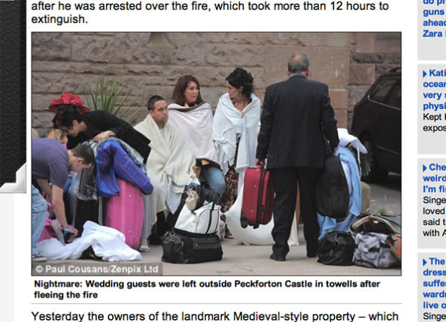 One bystander summed it up to the paper: "What a way to start married life." No kidding. The over/under on that marriage lasting through the week can't be good when the most memorable wedding photograph is the guy's mugshot after he almost burned a castle down. Not to mention putting your dearest friends and family members' lives at risk, or the fact that the bride just realized she married a pyromaniac. And seriously, if you're shelling out enough cash to have a wedding at a castle, then how much is the tipping point?
