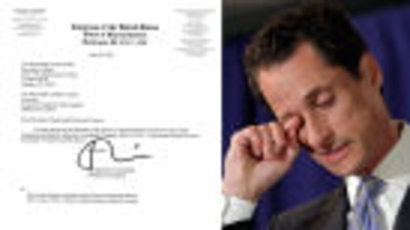 Rep. Anthony Weiner — the one with the penis — finally got around to turning in his resignation letter today, but he'll still be a congressman until midnight.