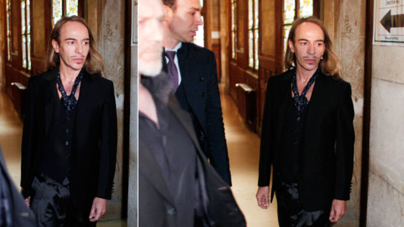 Among the many highlights of former Dior designer John Galliano's trial today in Paris—the recounting of his wild anti-Semitic night, his apology and admission that he was drinking heavily and taking Valium "like candy," his hot lawyer—the most memorable was his outfit. Just look at it!