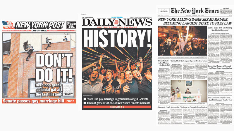 Here are the covers of New York's three biggest dailies. Notice anything? That's right: Only the News Corp-owned Post had the guts to cover the shocking story of a "hero cop" saving a "suicidal gal." What do the Times and the Daily News lead with? Some obscure bit of legalism passed by the bums in Albany. [Yawns] Looks like we all know which paper covers the real New York!