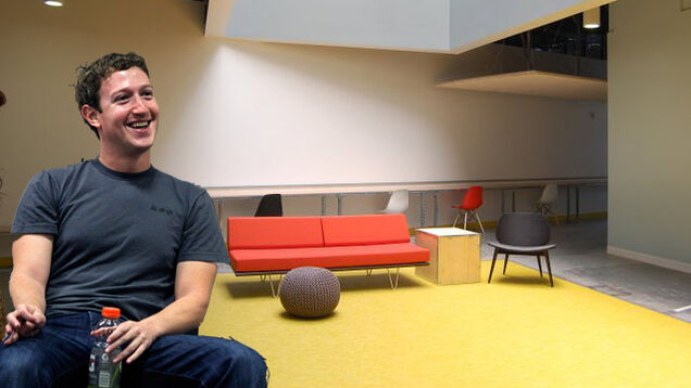 [Photo of Zuckerberg via Getty; office photos via Facebook]
