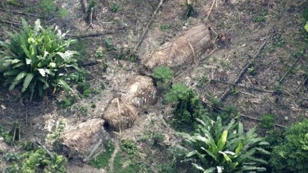 Here are some aerial pictures, taken in April by the Brazil's Department of Indian Affairs, of the tribe's village. According to the AP, the village is is composed of "four large, straw-roofed buildings." Villagers subsist by growing corn, bananas, peanuts and other crops and likely speak a language that belongs to the pano language group. They're one of an estimated 68 uncontacted tribes in the Amazon.