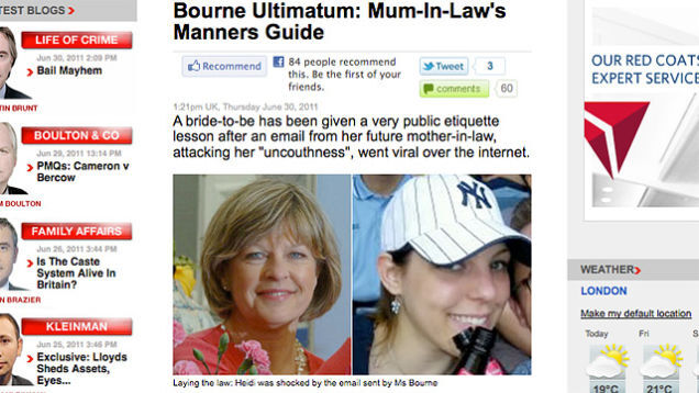 Over in the U.K. they like to stand by their traditions and do things a certain way. That still doesn't excuse Carolyn Bourne from sending an overly bitchy email to her future daughter-in-law, Heidi Withers, about her "rude behavior." Who is ruder here?