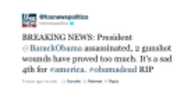 But after two hours of no one caring, it looks like they decided to have a different kind of fun. The account icon was reverted back and the hackers Tweeted "Just regained full access to our Twitter and email. Happy 4th." And then: "@BarackObama has just passed. The President is dead. A sad 4th of July, indeed. President Barack Obama is dead." They claimed the president had been shot in a restaurant in Iowa, and wished "luck" to Joe Biden. A few minutes after they started the hoax, the Twitter went silent.