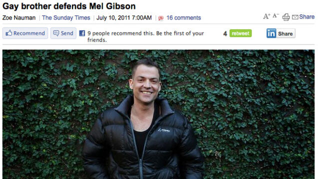 The only thing of note Mel Gibson has done in the last few years is get caught delivering racist, homophobic, and anti-Semitic rants. Well, now he has a gay brother to help defend him from critics. Meet Andrew Gibson, everyone.