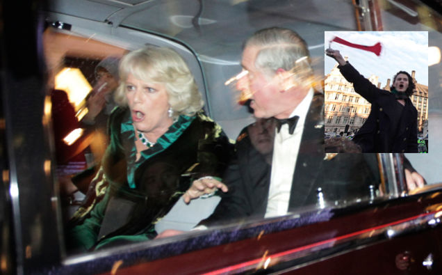 Charlie Gilmour, the son of Pink Floyd guitarist Dave Gilmour, was sentenced to 16 months in jail today for attacking a royal Jaguar that was part of Prince Charles and Camilla's motorcade during a student riot in London last year. The riot resulted in the best photograph of British royals ever (above). The court watched video from the attack, where Gilmour yelled: