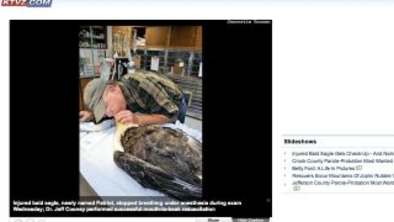 Haven't you always wondered if mouth-to-beak resuscitation—"bird CPR"—would actually work? Well! We can confirm that, yes, in at least one instance it has: Bend, Ore. veterinarian Jeff Cooney saved a bald eagle (named, boringly, "Patriot") this week by performing CPR on it. Patriot, whom Dr. Cooney is rehabilitating from an apparent car accident, was under anesthesia at the time; KTVZ provides the image above, though we're not sure if the photograph is a staged re-creation of the event or an actual action shot of the heroic lifesaving attempt. Either way, it's good to know that, in the event that you come across a dying bird, you may have a shot at saving its life. [KTVZ]