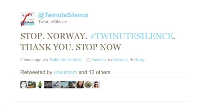 - What an incredibly moving way to pay tribute to the victims of the Norway massacre: one whole minute of "Twitter silence." One. Minute. Of Twitter silence. Jesus Christ.