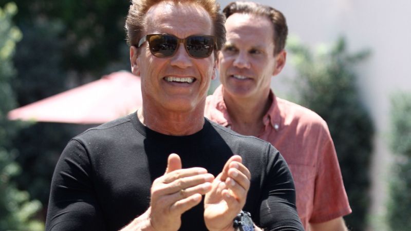 - Happy birthday to Arnold Schwarzenegger, who turned 64 on Saturday and celebrated by having lunch with his sons Patrick and Christopher and shopping at Barneys. Maria Shriver met up with trio to give Schwarzenegger her gift, which was not murdering him on sight. That night, Schwarzenegger wrestled a bear to death, demonstrating to his clan that he was still fit to rule. [Radar]