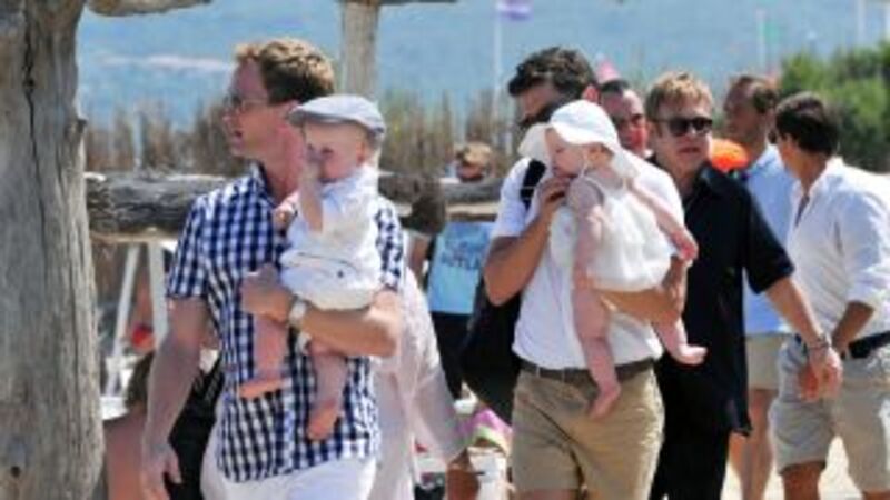 Elton John and husband David Furnish had some special guests in St. Tropez on Thursday when Neil Patrick Harris and fiancé David Burtka joined them for a ride on their yacht. They even made it a family affair, with Harris and Burtka bringing along twin babies Harper Grace and Gideon Scott to play with nine-month-old Zachary, John and Furnish's son. For no other reason than how cute this all is, here are some pictures from the big gay family affair.