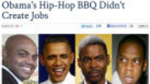 The mischievous scribes at Fox Nation are lighting up Twitter with this magisterial headline-photo combination about President Obama's private White House birthday party yesterday. The "Hip-Hop BBQ" didn't even create any jobs! This guy doesn't even deserve to be 50 years old.