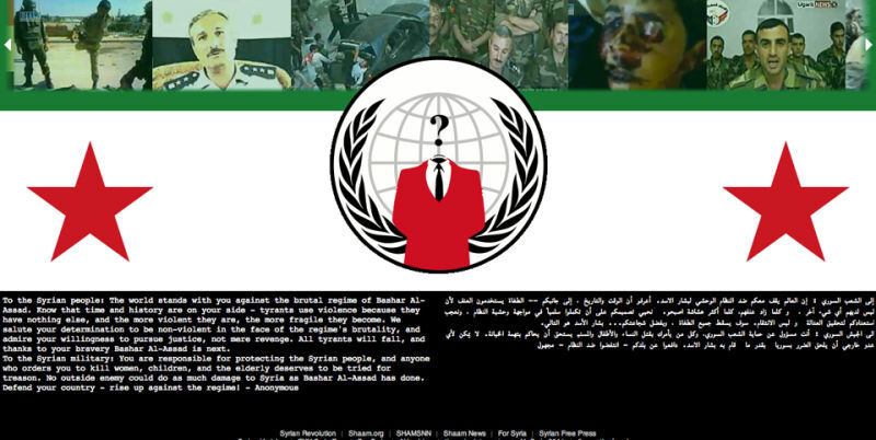 Back in April, hackers also took over the website of Syria's parliament, posting pictures of protesters and playing patriotic songs.