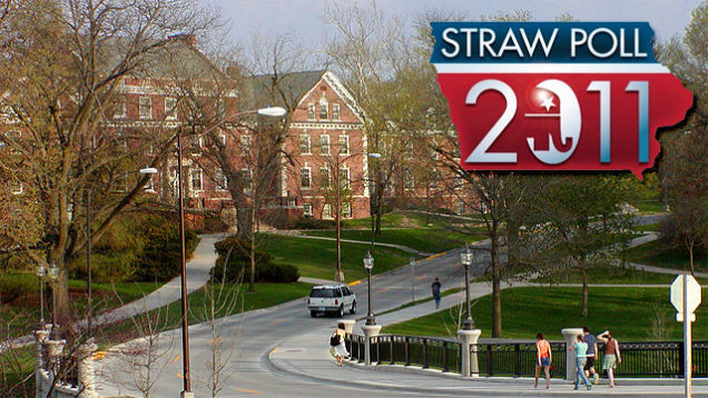 The straw poll, which gathers voters from around the state at Iowa State University, is not an especially complicated set-up: voters pay $30 for entry, let each of the candidates bribe and fellate them at their booths, and then cast their votes. Mitt Romney and Jon Huntsman, who don't really care about Iowa, aren't participating, and Newt Gingrich couldn't afford to rent any space. Here's how the remaining candidates plan to win over voters' hearts: