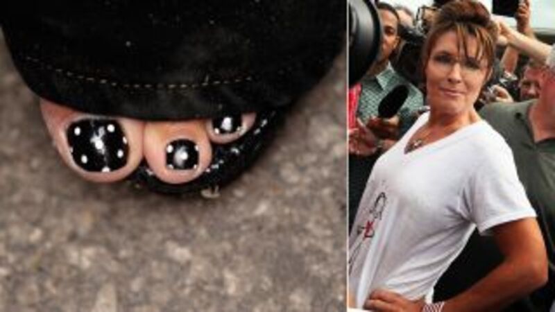 Spotted in Iowa this weekend: Sarah Palin sporting spotted toenails. And not the first time, either! Naturally, Andrew Sullivan is incensed.