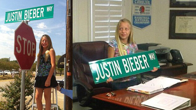Having, through "a Facebook contest," effected a coup against the rightful mayor of Forney, Texas, 11-year-old despot Caroline Gonzalez chose to immediately flaunt her power by changing the name of the town's "Main Street" to "Justin Bieber Way."