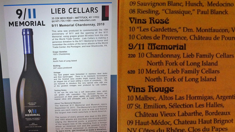 According to Long Island vintners Lieb Cellars, their 9/11 memorial wine was made "using grapes grown 90-miles from the site of the World Trade Center." Maybe they thought it was perfectly fine to jump on 9/11 because it's a really classy wine? Imagine what would happen if McDonald's unveiled a new 9/11-themed McRib sandwich made with beef from Pennsylvania cows raised near Flight 93 Memorial Park.